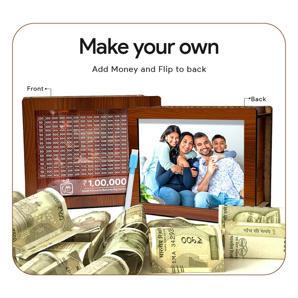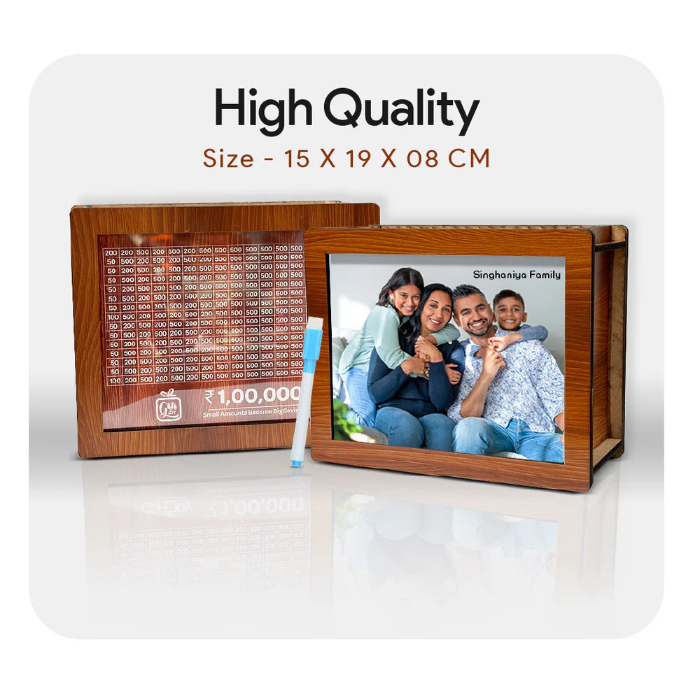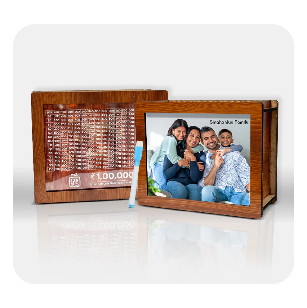 Designed for smart saving, it can hold up to ₹1,00,000, ensuring you reach your financial goals with ease. The transparent acrylic top lets you track your savings, while the included marker pen lets you set goals.