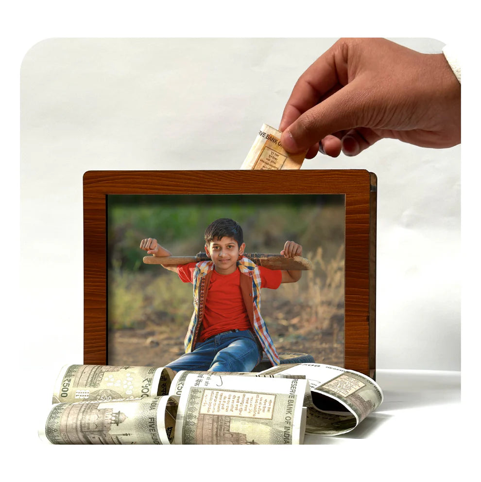 Save in style with our Personalized Wooden Money Saving Box, crafted from durable 4mm wood for lasting use. This unique piggy bank features a high-quality image and name customization, making it a perfect keepsake for kids and adults alike.
